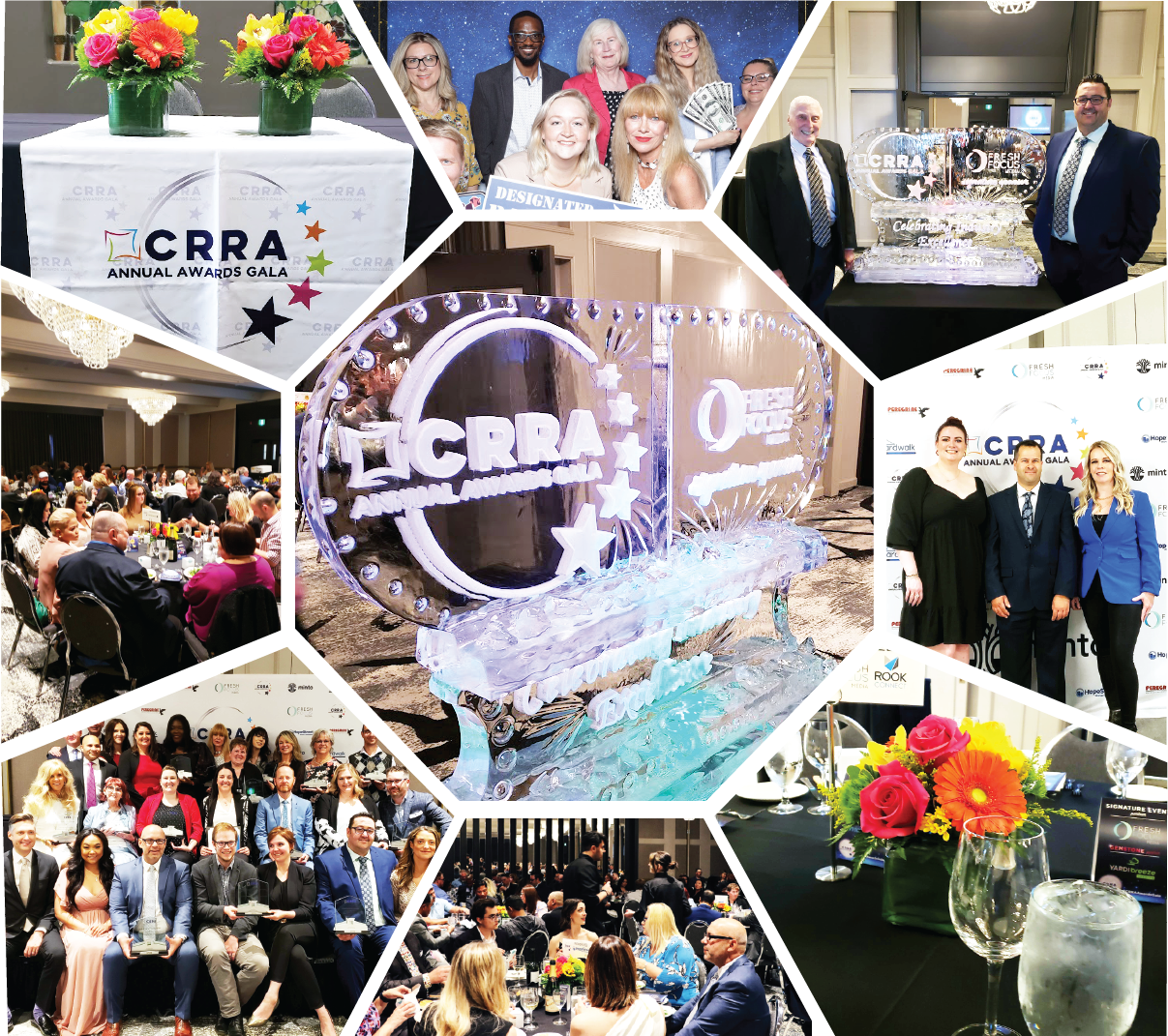 This year, there was added flair to enhance the evening and provide a more comfortable and social atmosphere. As soon as attendees entered the event, they were greeted with a stylish ice sculpture, lit with colour-changing lights, highlighting the CRRA’s Annual Awards Gala and 2022’s Signature Event Partner, Fresh Focus Media. Awards Gala winners and attendees had memories captured by both a photographer and a videographer throughout the evening.