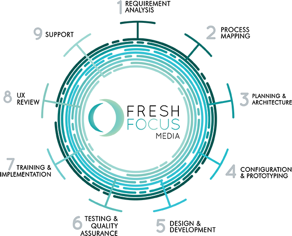We believe in collaborative success, and our project management process involves your input every step of the way. Our development team will work with you to devise a series of individual tactical Sprints, strategically utilizing key aspects of the project both through interactive renderings and QA software models, keeping you involved throughout the development process. Incorporating practical use cases and keeping you working alongside the Fresh Focus Media team helps ensure proper communication and mitigates scope additions. Capitalize on our proven process and get your business systems running the right way in the shortest possible time frame with our team supporting your software needs every step of the way.